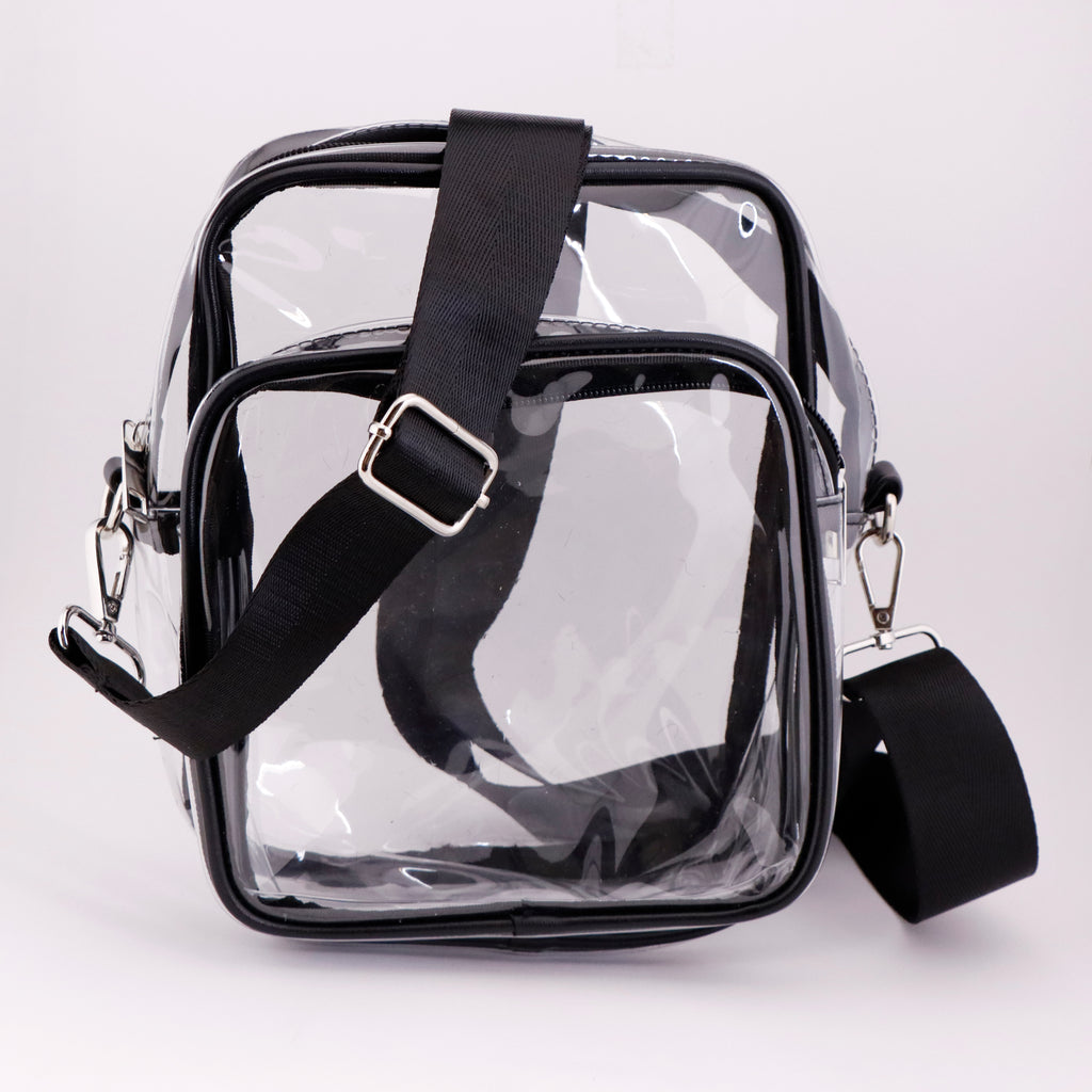A go-to bag for carrying all your essentials. Convenient clear crossbody bag gets you past security while top zippers keep everything secure. Our adjustable strap helps you choose how you want to wear it. Double pocket compartments give you plenty of space for concert goodies!