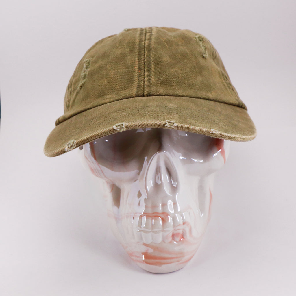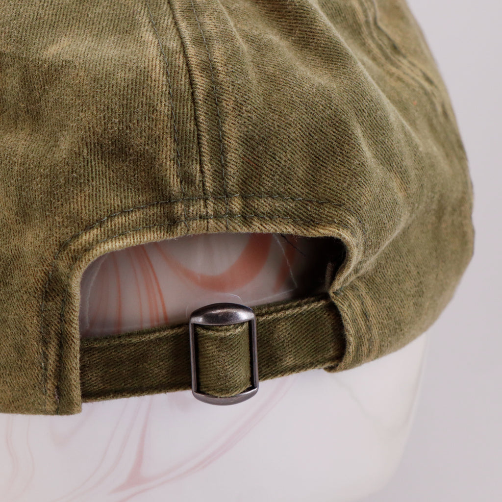 Beat the heat in our first cap style. This mossy green mineral wash cap is perfect for every outfit. Back strap is adjustable to fit everyone!