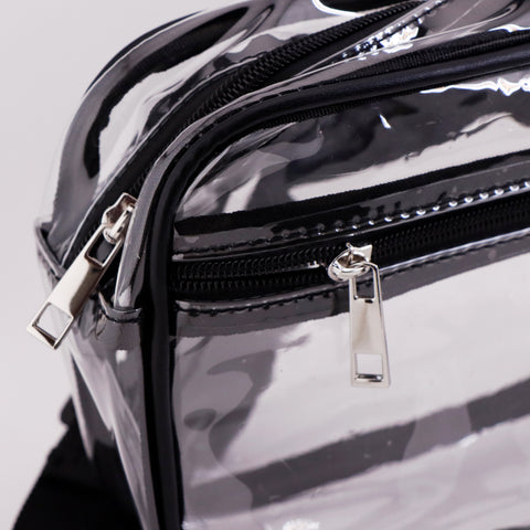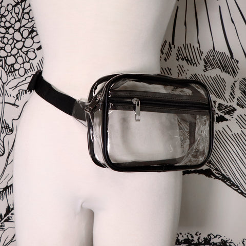 A go-to fanny pack for carrying all your essentials. Convenient clear sling bag gets you past security while keeping your hands free and clear. Our adjustable strap makes gives you comfort and the zip front pocket gives you extra space!
