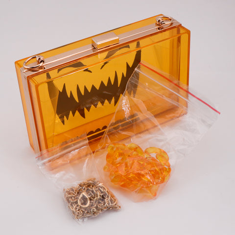 A stand out bag for carrying all your essentials. Convenient transparent crossbody bag makes it easy to never loose anything and a top clasp keeps everything secure. A golden metal chain strap hangs comfortably across the body. An extra short acrylic chain helps you to mix it up.